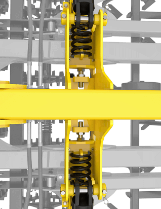 Підвіска бокових секцій агрегату здійснюється за допомогою пружин. Усі удари під час роботи поглинаються цими пружинами.