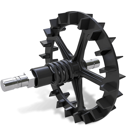 Більшість передпосівних компакторів, обладнаних котками для зворотнього ущільнення грунту, мають проблему утворення люфту між окремими сегментами котка після певного наробітку. Ми використовуємо компресійну пружину в компакторах SWIFTER, встановлену на валу, на якому розміщені сегменти котка. Пружина безперервно тисне на дані сегменти та запобігає утворенню люфту між окремими сегментами і таким чином захищає вал від розбивання.