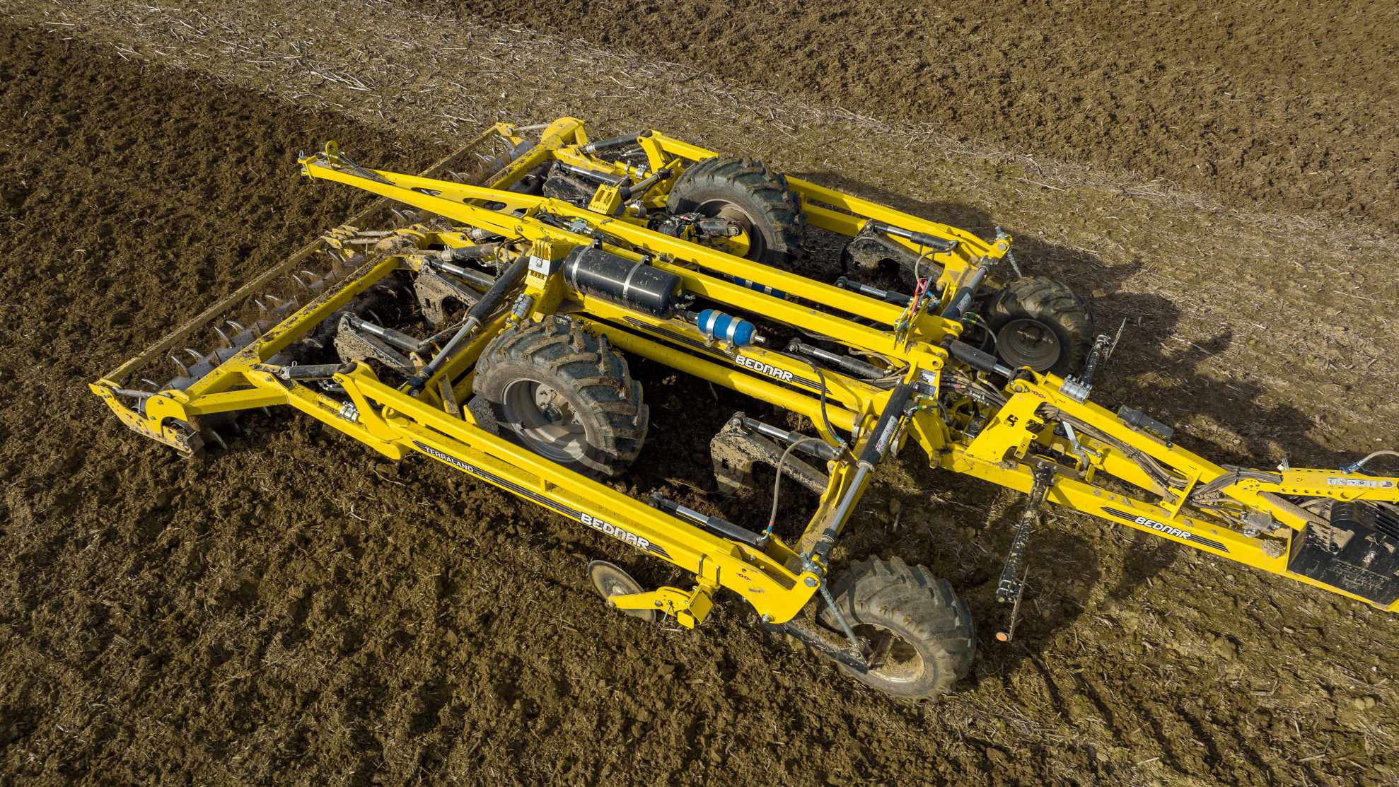 TERRALAND TO виготовляється з робочою шириною від 4 до 6,4 м. Надзвичайно міцна рама, виготовлена з кронштейнів діаметром 150 × 150 мм, у поєднанні з гідравлічним захистом стійок, забезпечує інтенсивний глибокий обробіток ґрунту на глибину до 55 см. Гідравлічний захист кожної стійки NON-STOP з навантаженням до 1500 кг.
